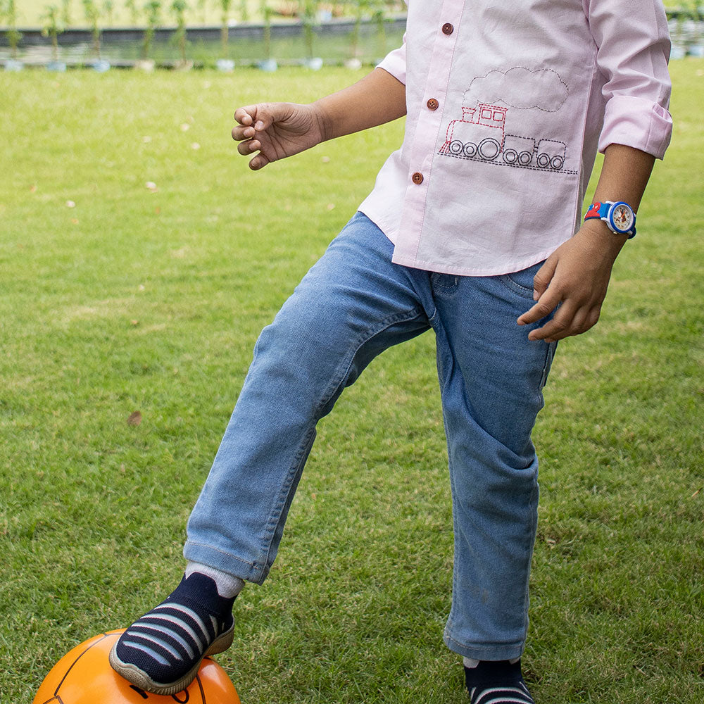 Our classicξPiggy shirt with a perfectly hand embroidered engine will surely be your little ones new favourite for casual parties. Roll up the sleeves or keep them crisp straight, jeans or trousers, stylize it your way for a casual outings or a day party. Designed with a shirt collar, button placket and long sleeves, this shirt is made of 100% organic cotton for uber comfort.