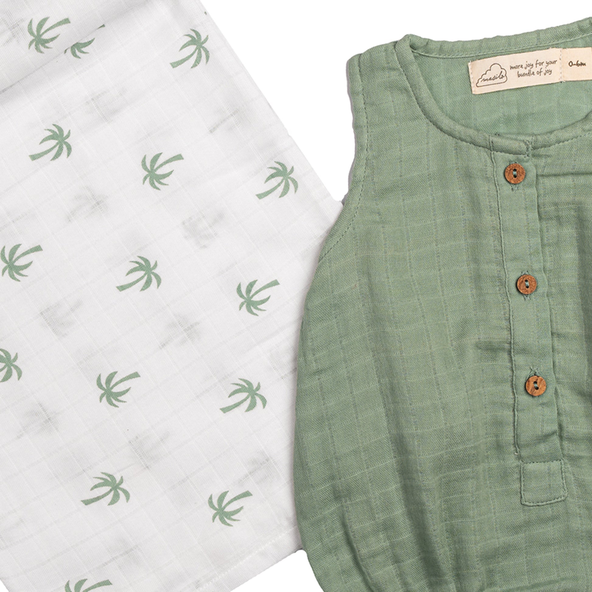 "It's a classic for a reason. One of our organic swaddle blankets gets perfectly paired with a cutest-of-cute, baby romper.