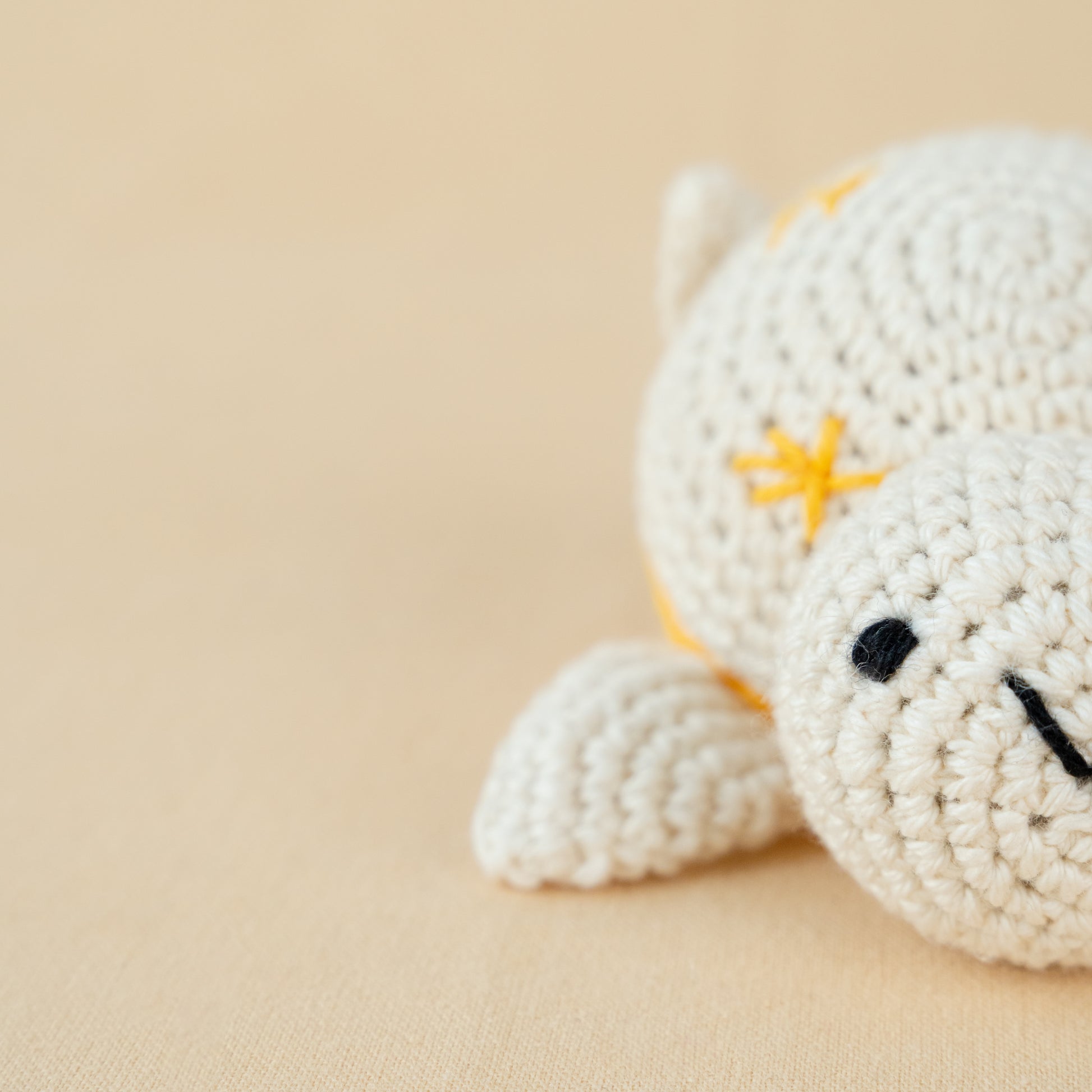 Made from soft, baby-safe cotton yarn and gently filled to be just the right weight for tiny hands, this turtle rattle offers a soft jingle with every shake. The unique texture of crochet stimulates your baby’s sense of touch, while the sound helps with auditory development.