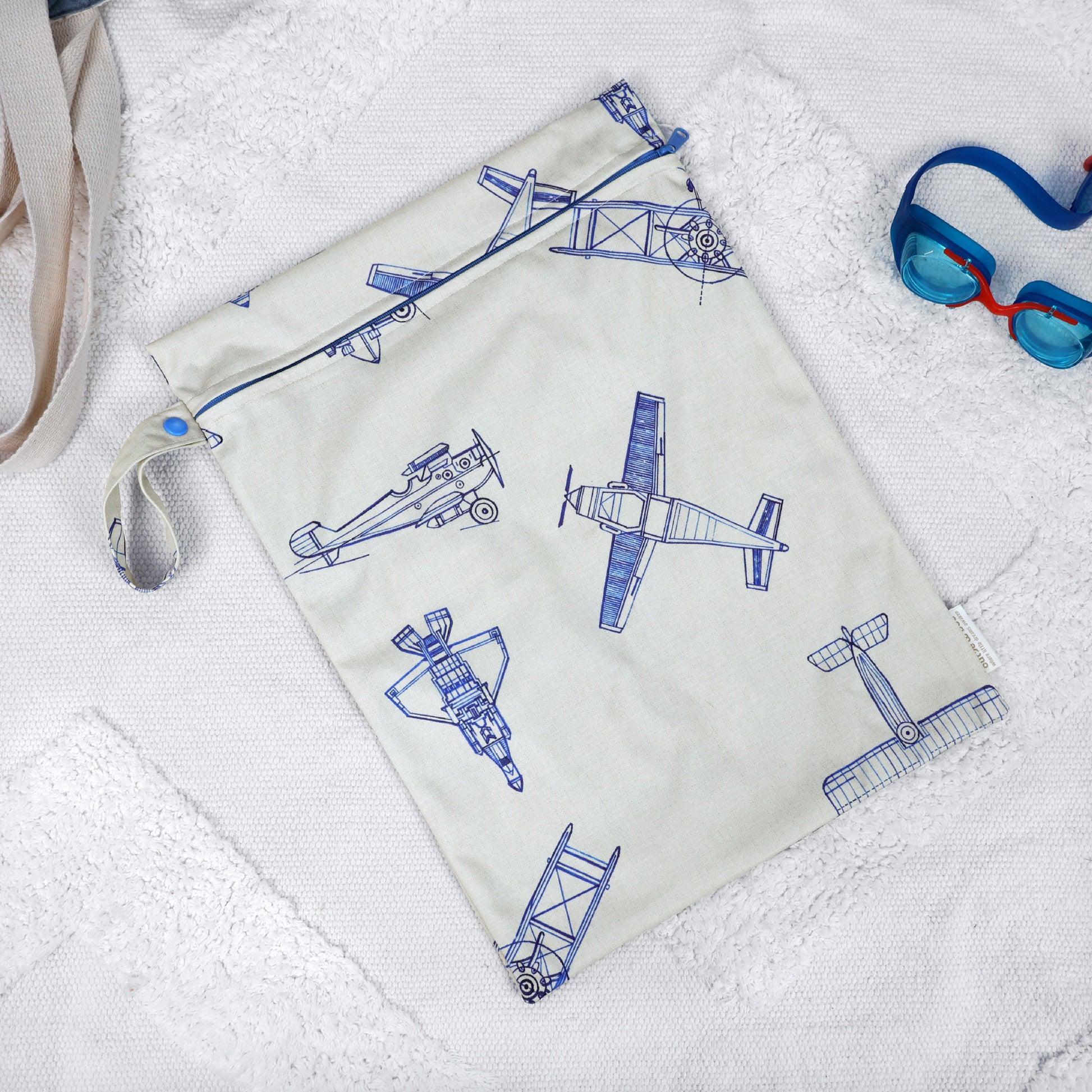 Our wet bags are made of waterproof fabric with one-of-a-kind, hand-drawn designs, making them perfect for storing damp (but not overly wet) costumes, clothes, and diapers before washing. Additionally, these bags can be utilized when traveling to the beach or pool, as they protect items inside from any moisture.