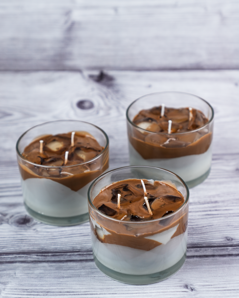 Premium Gel & Coconut-Soy Wax: Realistic iced coffee look with gel “nugget ice” layer