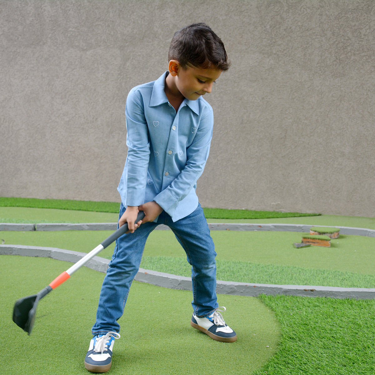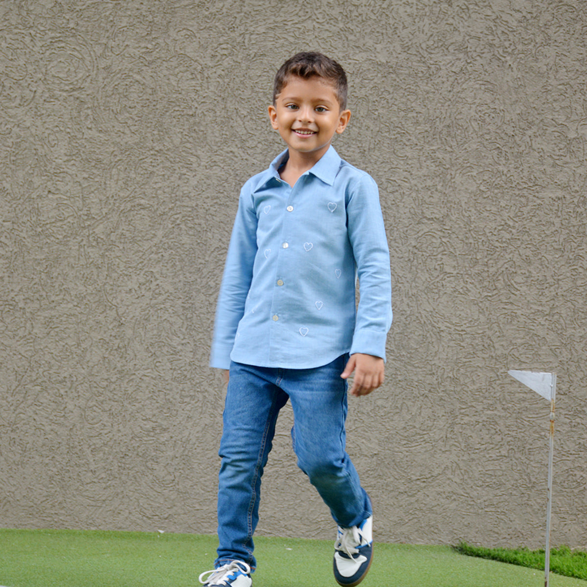 This adorable denim shirt is all about sweet details! Featuring delicate hand-embroidered little hearts, it adds a charming, playful touch to the classic denim look. Soft and durable, with a button-down front and rolled-up sleeves, this shirt is perfect for kids who love a mix of style and fun. A wardrobe essential with a dash of love!