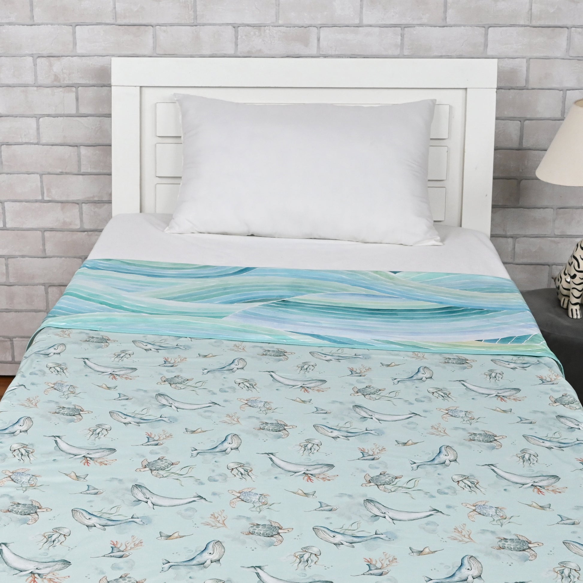 This blanket is the perfect addition to your little one's bedroom! Crafted from cotton, this blanket features a whimsical sea creature print that will have them dreaming of underwater.