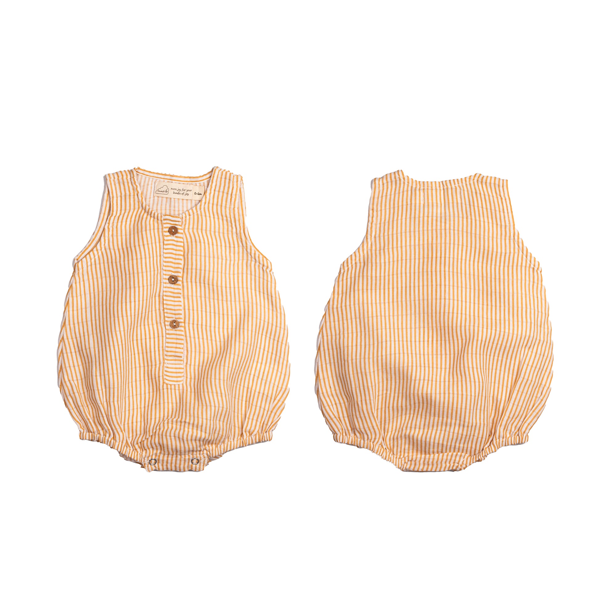 Our soft muslin romper is perfect for babies. Made from 100% organic cotton - it's breathable and comfy! Keeping your baby's delicate neck in mind, this piece features an extra long front opening so it's easy to put on your baby.