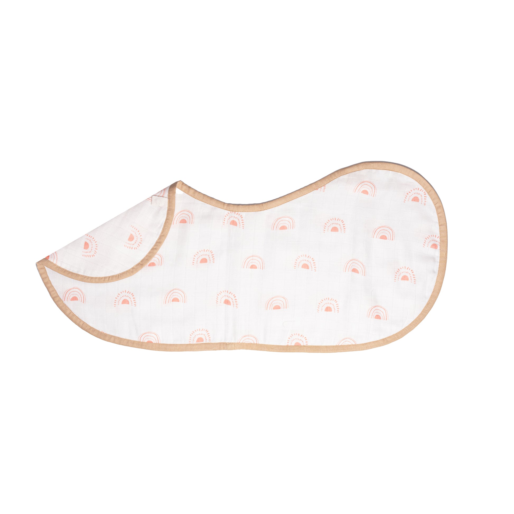 Made with two layers of organic cotton muslin, our all-in-one burp cloth and bib keeps you and your little one clean. The super absorbent fabric with its unique shape sits right over your shoulder, making it a must-have during meal time.