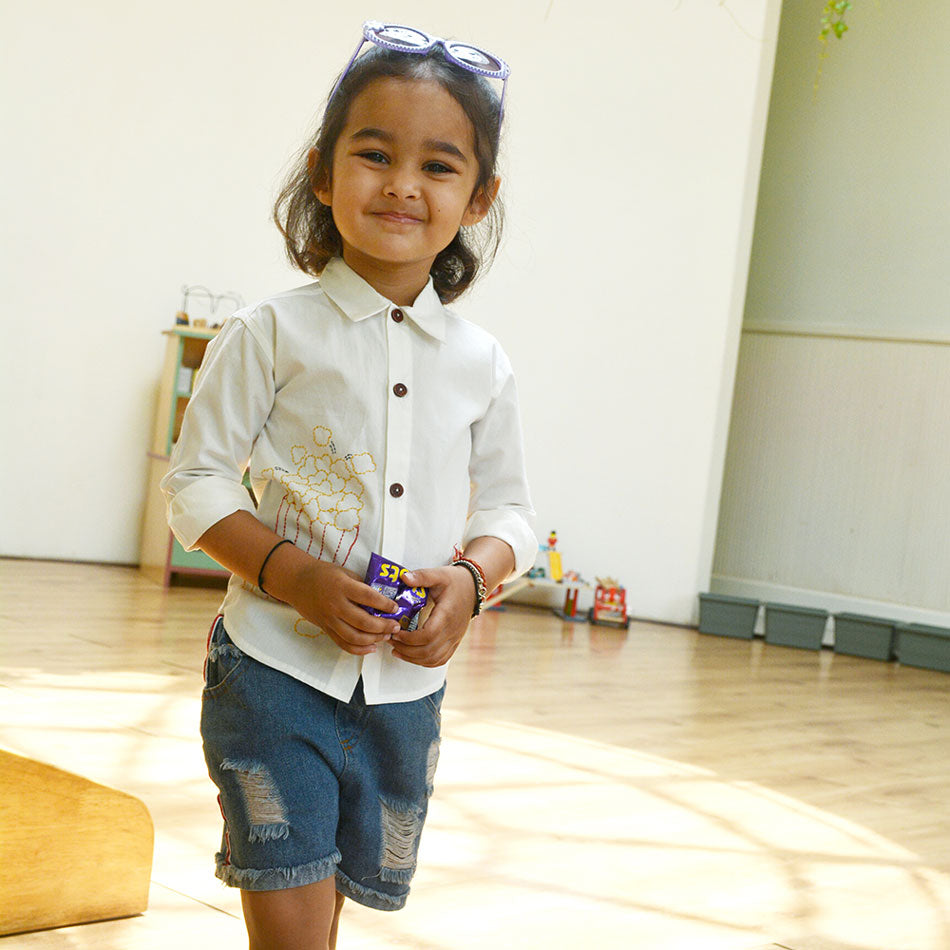 Stylize the shirt with trousers, or roll up the sleeves & team it with denims or shorts for a casual look. Made from high-quality, breathable organic cotton fabric, this shirt ensures comfort for your child.ξ