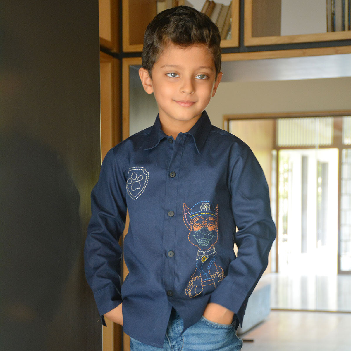 Inspired by kids’ favourite Paw Patrol’s Chase, here’s our hero puppy all set to save the world when in trouble! Made from high-quality, breathable organic cotton fabric, this shirt ensures comfort for your child.