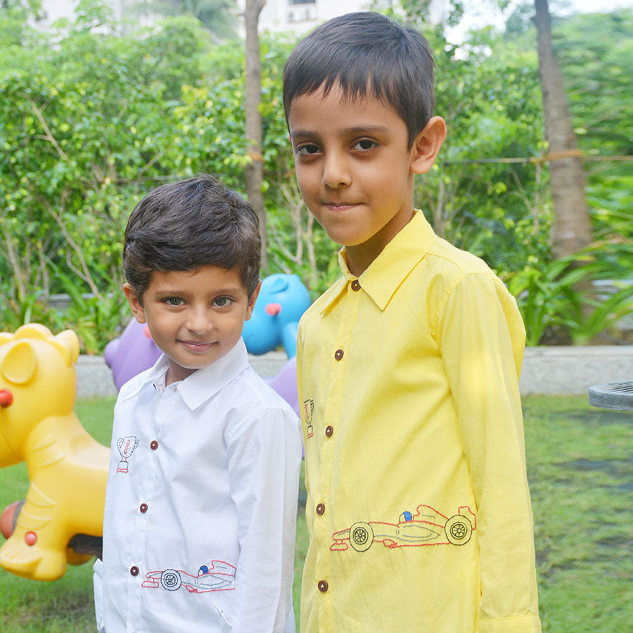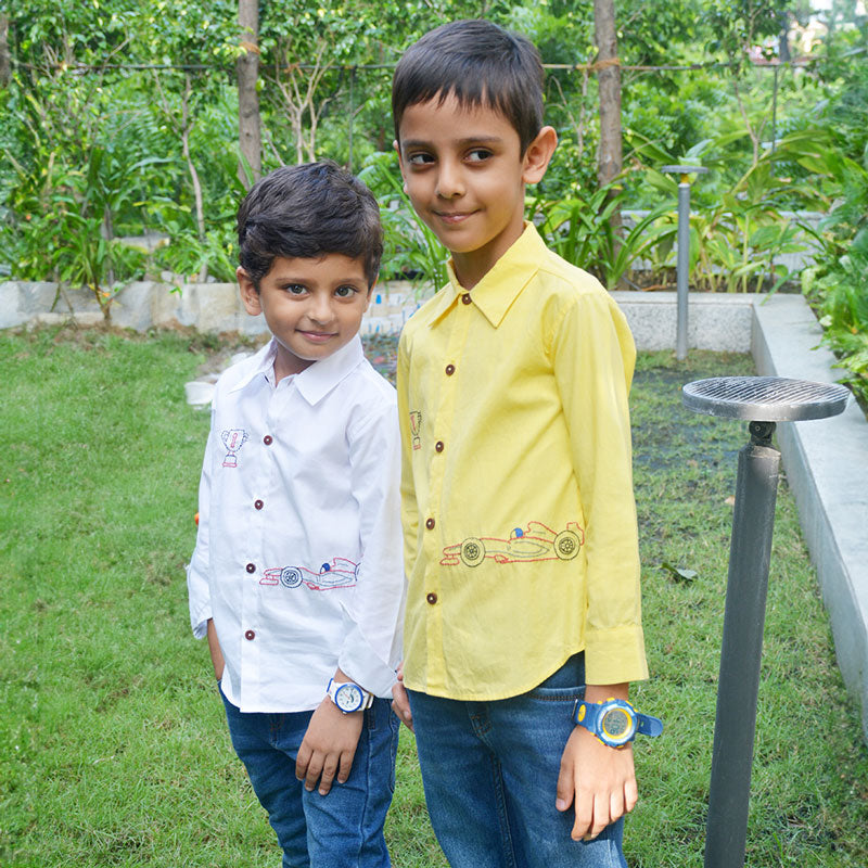 Race Car Embroidered Shirt - Yellow