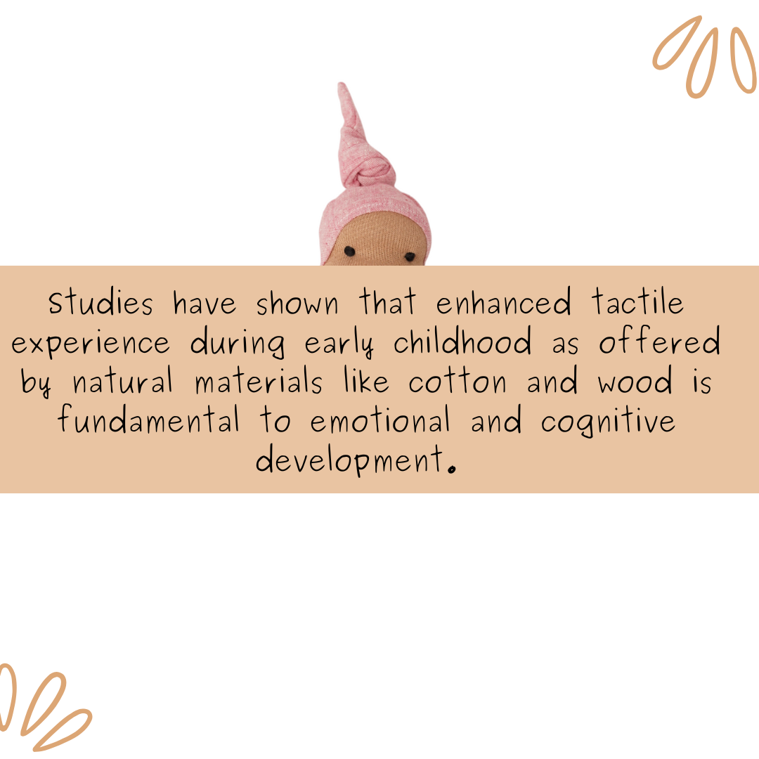 Introducing our 6.5" handmade Waldorf doll, lovingly crafted to nurture your child’s imagination and emotional growth. Designed with the softness and simplicity central to Waldorf dolls, this gentle companion becomes a canvas for your child’s dreams, feelings, and stories. Made from all-natural fibers, our cloth doll for infants features a minimalistic aesthetic that invites open ended storytelling. Whether cradled during naps or joining in during playtime, this doll offers a grounding, sensory-rich experience for your little one. Just so you know, Rumi can be the perfect gift for a Baby Shower or that first special meeting with your nephew, niece or friend's new baby!