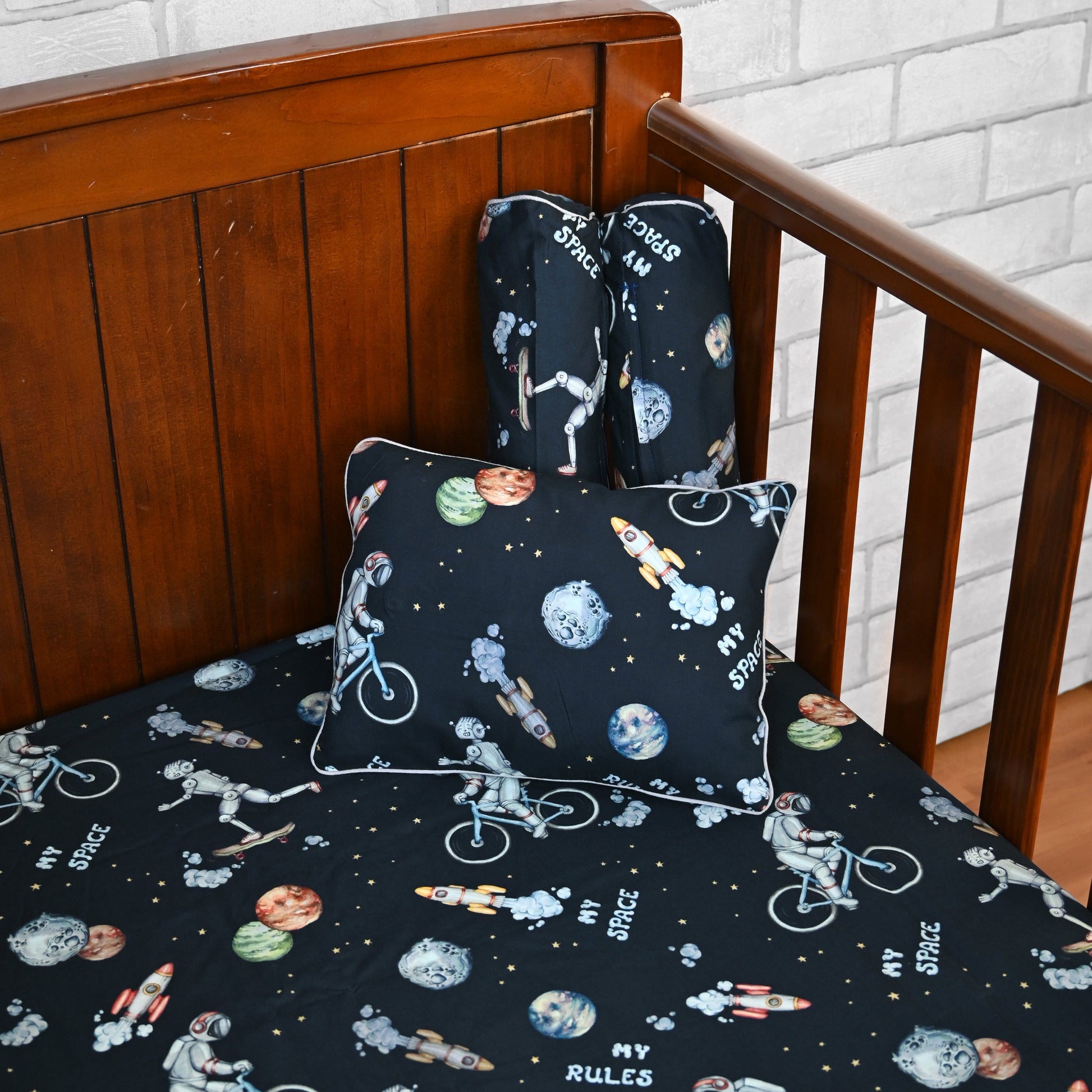 A timeless nursery essential! Crafted in ultra-soft & ethically sourced 100% cotton, our Crib Set is breathable, gentle on delicate baby skin, and designed for maximum comfort. Whether you’re setting up your little one’s first crib or choosing a thoughtful gift for new parents, this set brings warmth, safety, and joy together in one bundle.