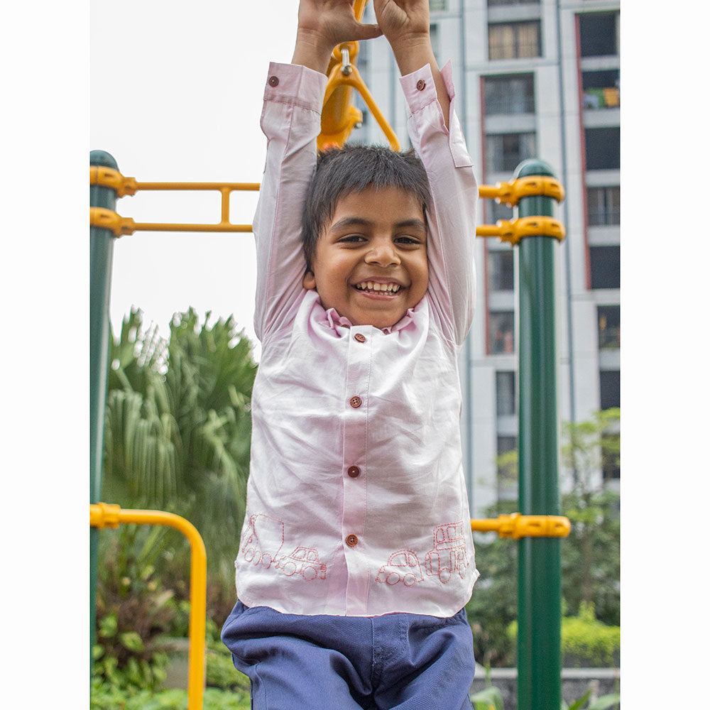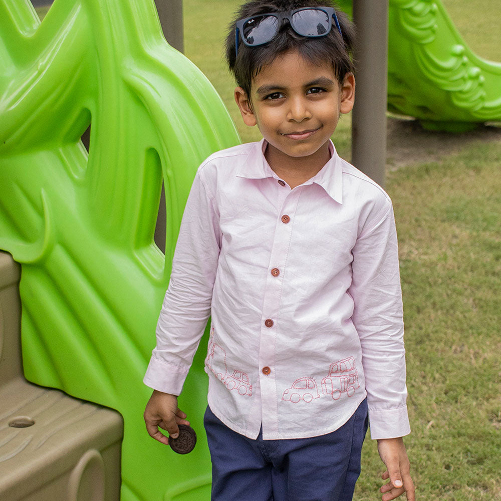 Our classicξPiggy shirt with an embroidered multi coloured vehicles at a traffic signal design will surely be your little ones new favourite for casual parties. Roll up the sleeves or keep them crisp straight, jeans or trousers, stylize it your way for a casual outings or a day party. Designed with a shirt collar, button placket and long sleeves, this shirt is made of 100% organic cotton for uber comfort.