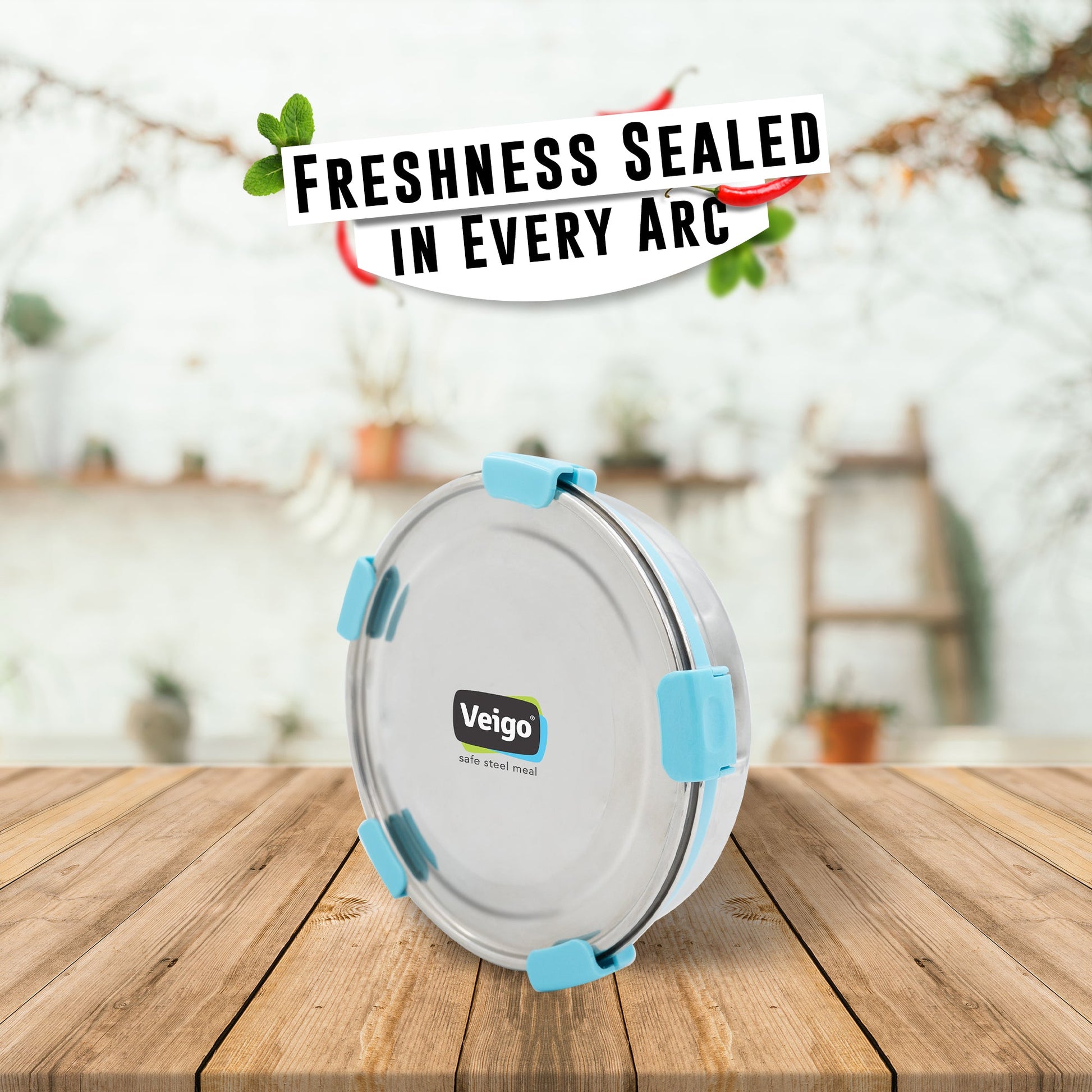 Veigo Maxosteel Stainless Steel Round Storage Box with Reversible Clip Mechanism