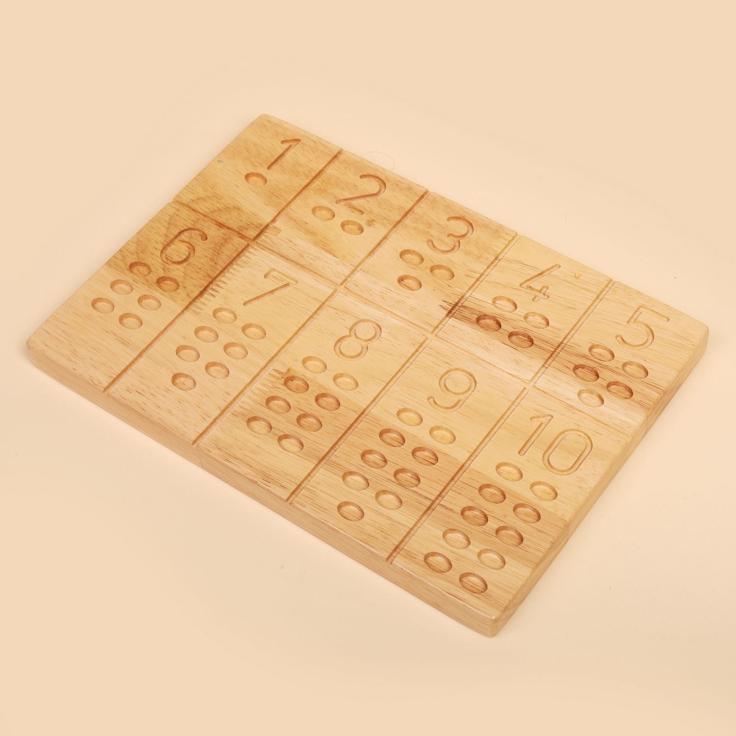 Our Montessori Educational Toy is a thoughtfully crafted wooden number tracing 1-10 board designed to make early math learning engaging and fun. Perfect for preschoolers, especially tactile learners, this double-sided board offers two enriching experiences in one. On one side, your child will find large engraved numbers with smooth grooves for tracing. This hands-on approach helps build muscle memory and improves number formation. By using the included wooden stylus or even their fingers, children practice writing numbers in a sensory-rich way. Flip the board, and the learning continues with ten sections of holes for counting objects. This practical feature encourages children to associate quantities with written numerals, developing both number recognition and basic math skills. Using items like beads, pulses, stones, or shells, they will experience math concepts in a tangible and interactive manner. The Montessori Educational Toy not only enhances fine motor skills but also fosters cognitive development and number comprehension. Made from high-quality, child-safe wood, it is designed to be durable and environmentally friendly. Its natural finish ensures a soothing, sensory experience for young learners. You will receive: One reversible number tracing board One wooden stylus Ideal for independent play, homeschooling, or classroom learning, this number tracing board is an excellent addition to any child’s educational journey.
